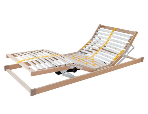 Motorový polohovací lamelový rošt české výroby. Tento typ roštu se hodí pro všechny typy pěnových a latexových matrací. Polohování roštu se ovládá pomocí ovladače, který lze zavěsit na bočnici postele. Rošt se polohuje pomocí dvou motorů, tím se zajistí nezávislé polohování hlavy a nohou. Pokud není motor roštu v činnosti, tak se automaticky odpojí od elektrického proudu. Díky fóliované povrchové úpravě se rošt lépe udržuje. Pomocí posuvných objímek lze nastavit potřebnou tuhost ve střední části lůžka. Rošt má středový popruh, který zlepšuje jeho stabilitu a nosnost. Vrtáním v ramenní oblasti dochází ke změkčení lamel. Změkčené lamely zajistí správnou oporu páteře i při spaní na boku. Maximální doporučené zatížení roštu je 120 kg. Pro bezchybné užívání motorového polohování roštu se doporučuje dodržet maximální šířku střední opěrné konstrukce postele 70 mm. Za příplatek lze objednat atypický rozměr roštu (případně uveďte do poznámky v košíku). Vlastnosti: - rozměr: 80x200 cm - záruka: 3 roky - počet lamel: 28 kusů - výška roštu: 7 cm - výška roštu s motorem: 19 cm Prodloužená šířka: - 120 cm - příplatek 30% - 140 cm - příplatek 60% Prodloužená délka: - 210 cm - příplatek 15% - 220 cm - příplatek 30% V případě atypického rozměru délky i šířky současně se příplatky sčítají.