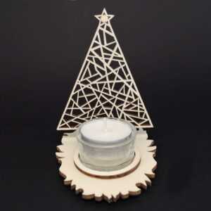 Dřevěný přírodní svícen ve tvaru stromu je vyrobený z překližky topolu. Rozměr je 10 cm. Dekorace se skládá ze dvou částí, které jsou zabaleny v sáčku a složení je velmi snadné. Ke svícnu doporučujeme přiobjednat skleněný kalíšek na čajovou svíčku - kód 71174.